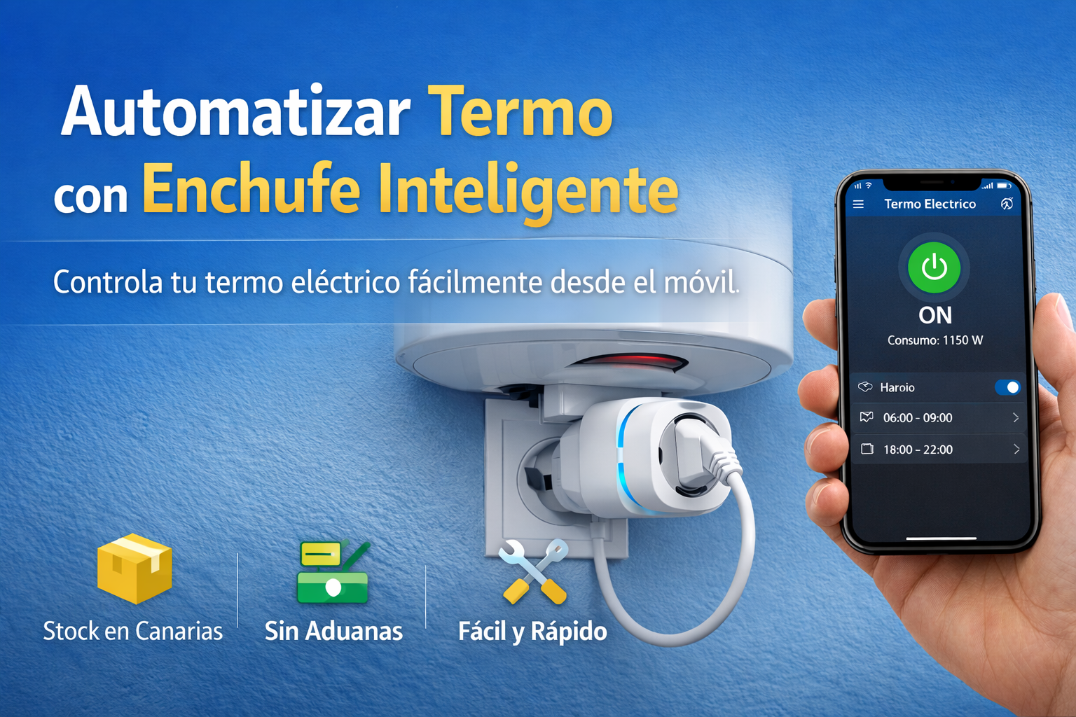 Ideal para viviendas en Canarias, donde el termo eléctrico es uno de los mayores consumos del hogar.