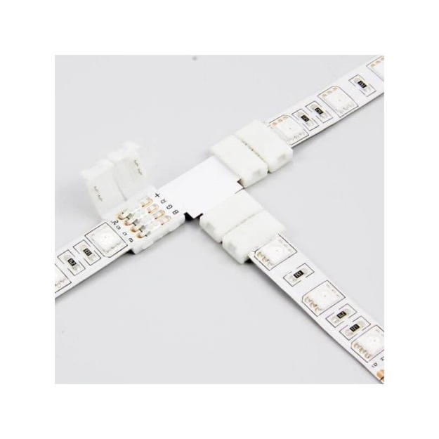 Conector de unión T para tiras mono color, RGB y RGBW en sus versiones de 8mm, 10mm y 12mm