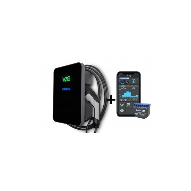 El pack V2C está diseñado para un gestión inteligente de la carga de vehículo eléctrico. Con la combinación Shelly EM con 2 pinzas + Trydan podemos conocer la potencia consumida en casa y ajustar la potencia de carga del vehículo para evitar el salto por potencia contratada. En caso de contar con una instalación fotovoltaica, podemos ajustar de forma dinámica la potencia de carga a los excedentes de la instalación. Además, con la pinza secundaria podemos medir la producción solar.