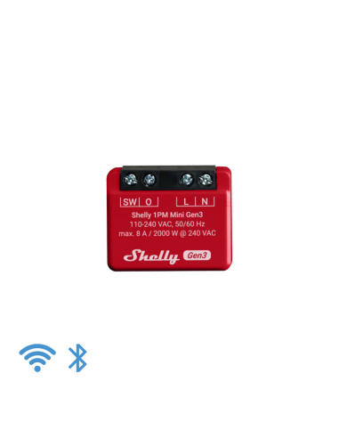 El interruptor de relé más pequeño del mundo para un control inteligente y una supervisión precisa de la energía. Automatice sus luces o pequeños electrodomésticos en menos de 10 minutos, y contrólelos y vigílelos desde cualquier lugar. Shelly 1PM Mini Gen3 es lo suficientemente pequeño como para caber detrás de cualquier interruptor de pared o toma de corriente, se puede adaptar y es altamente compatible con su ecosistema inteligente existente.