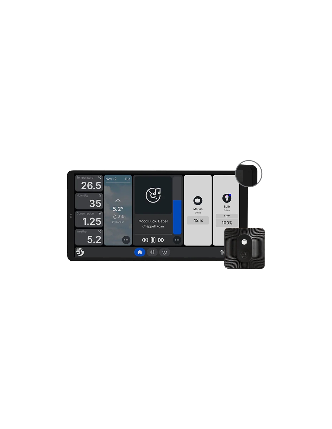 Con una pantalla táctil a color de 6,95", esta pantalla inteligente para el hogar facilita la monitorización, el control y la conmutación de circuitos sin esfuerzo, todo desde un dispositivo elegante e intuitivo. Para un control preciso de la temperatura, el dispositivo ahora incluye el sensor Shelly BLU H&T, que garantiza lecturas precisas de temperatura y humedad para un funcionamiento óptimo del termostato.